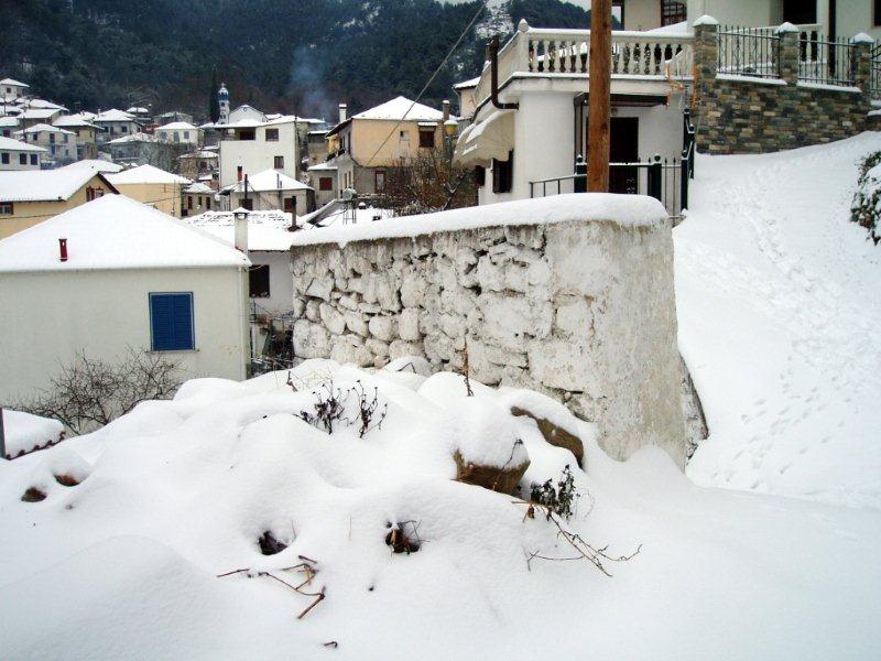 E szűk kis sikátoros meredek hegyi utakon havat takarítani biz nem illik. A kitaposott hó a legbiztonságosabb.