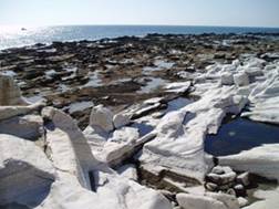 Paradisónál tegnapelőtt voltunk. 11 óra felé már nagyon unatkozott, így mondta, sétáljunk egyet. Céltalannak induló sétánk Paradisóhoz vitt. Az autónk csomagtartójában minden tevékenységhez megvan minden szerszámunk. Kikaptunk egy vödröt, a késeket és irány le a part. Nem volt fényképezőgép velünk. Hócsomók még foltokban voltak, tarajos hullámok mosták a széles homokfövényt, a sziklás részen a vízgyűjtőkben 2 cm vastagságban a jég megfagyva. Összenéztünk és nevettünk. Nevettük, melyikünk az őrültebb. Természetesen a feketekagylóra fájt a fogunk. A hidegben annyira lent volt a víz, hogy azok a kagylók, amik mindig víz alatt szoktak lenni, most teljesen kint voltak és csak a hullám teteje fedte el. Ha fentebb van a víz, -1m-rel- akkor ilyen hullám esetén még a partközelbe sem enged, mert egy erős hullám és az áramlat végzetes lehet, de most nem állt fenn ez a veszély. Csak hogy csuromvizesek leszünk.Én pottyantam be először a fagyos vízbe. Kabát, cipő, ruha, minden a vízben. Innentől kezdve viszont gyorsan ment a kagylógyűjtés, és ha mozogsz, nem fázol. Ha nem lett volna a hullám, úsztam is volna egy kicsit. Az eredmény egy fél vödör kagyló. Mint az ázott kutyák, úgy mentünk haza. De megérte. A kagylót otthon még átmostuk, és kint hagytuk a teraszon. Éjszaka eszembe jutott, vajon lefedtük-e a vödröt? A macskákat a tengerszag odacsalja. Reggel láttam, semmi gond, nem ették ki a macskák. A fedő egy vastag jégpáncél volt.