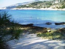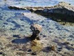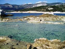Az itteni képen nem látszik sem az ösvény, amin haladnotok kell, sem a tavernasor. Az ösvényről készítettem a képet. Ez csak azoknak mond valamit, akik már megtették ezt a kirándulást. Ti sem ismertek rá? Nem csodálkozom. A víz most 12 C fokos. Amikor ti itt jártatok, legalább 26 C volt. Akkor csak egy méteres homokfövény látszik, most meg látjátok a partot szegélyező medret. Baleset nem történt, amikor itt fürödtetek, ezt a szakasz úszva tettétek meg, vigyázva, hogy a kövekre tapadt sünöket ne érintsétek.
