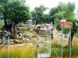 nnen egy pár méter távolságra van a félsziget leglátványosabb romrésze. Láthattok itt az ókorból, az azt követő kereszténység első szakaszából, de még a bizánci időből is oszlopokat, épületalapokat, és temetőt, amiben kicsiny kőládikó alapú sírok vannak. Találhattok itt egy kőkalyibát is, aminek rácsos ablakán, egy sziklára felkapaszkodva bekukucskálhattok. Ebben az épületben őrzik azokat a kőtáblákat, kereszteket, amiket itt a területen szétszórtan találtak. Minden kor ezt a területet használta, mint a fellegvárat. Koronként más-más szerepe volt. Átépítették, szétrombolták, újból felhasználták az előző korok épületeit.