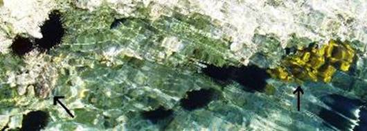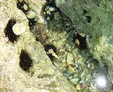 A szivacs alatt a kövér tengerisünöket láthatjátok. Ebből is frissiben felbontott és megevett egy-két sünt.