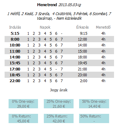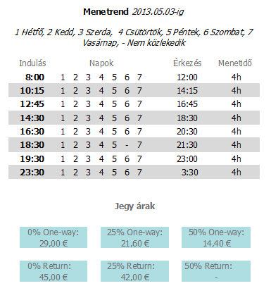 Jelen időszakban a menetrend május 3-ig olvasható. A későbbi menetrendet valószínűleg áprilisban tölti fel az autóbusztársaság. Annak érvényességét, kérem, az eredeti honlapról kövesse mindig figyelemmel az utazni szándékozó.