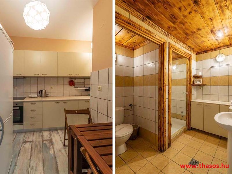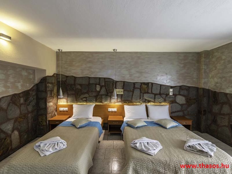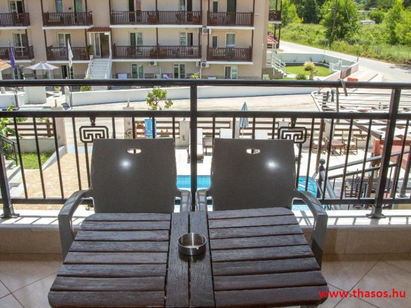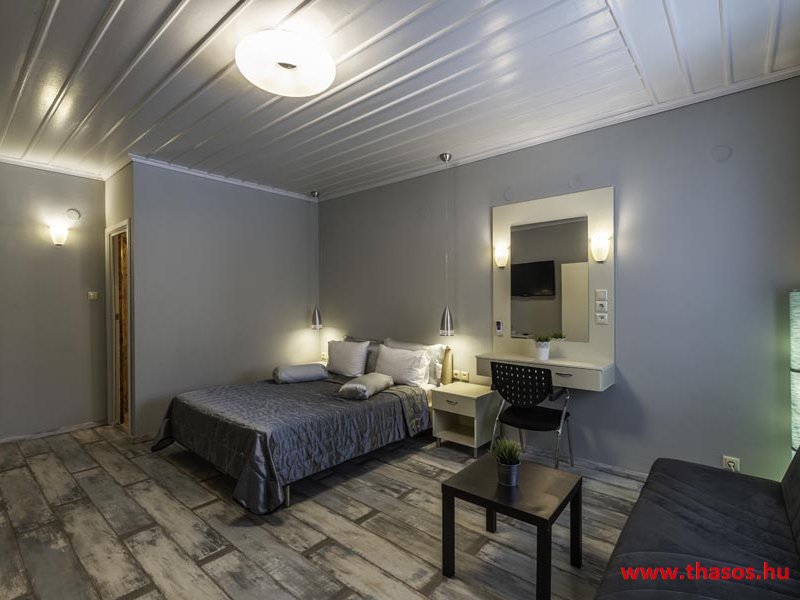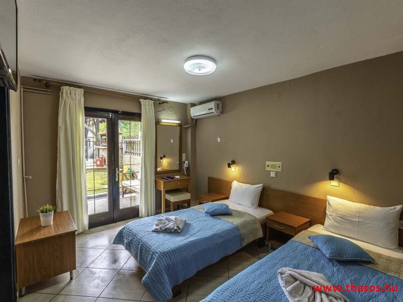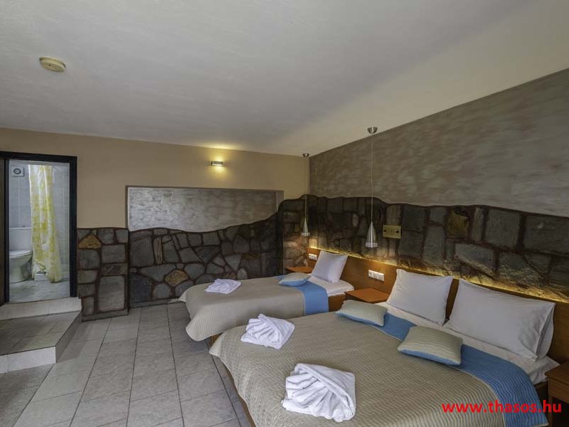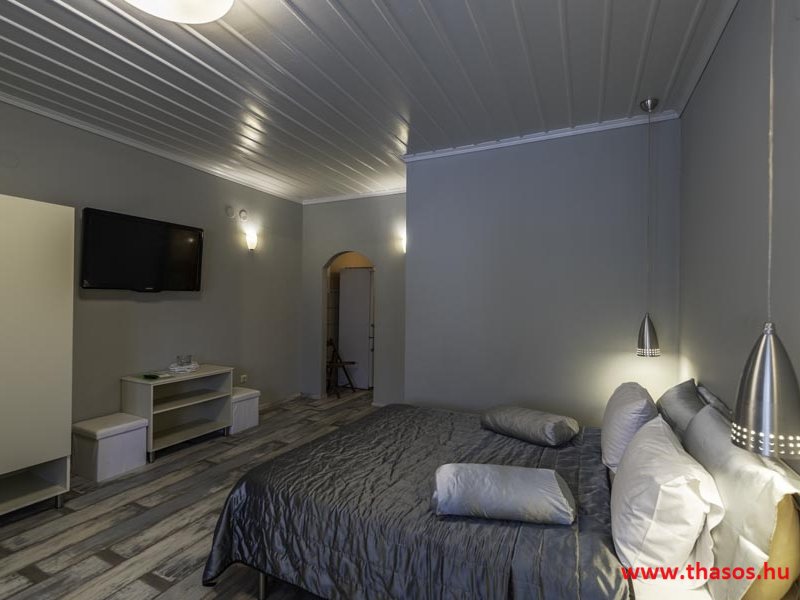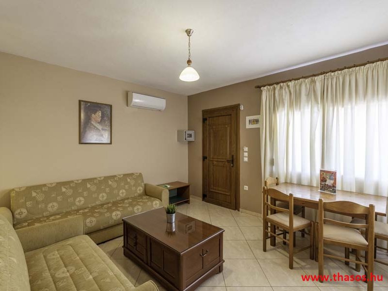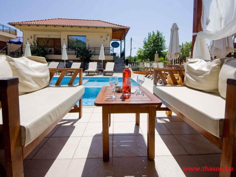 2026. évre új élet költözött ebbe a szálláskomplexumba. A gyönyörű szállás Skála Panagia camping part területe felett van. A szállás csupán néhány lépésre áll az Égei-tenger türkizkék vizétől és a híres Chrysi Ammoudia, azaz Aranypart strandtól. A közelben kristálytiszta vizű strandok, helyi taverna éttermek hagyományos ízekkel és festői ösvények találhatók, ahol sétálhat a tengerparton. A komplexum közepén egy lenyűgöző közös medence, amely ideális hűsítő csobbanásokhoz és pihenéshez a görög nap alatt. A medence speciális biztonsági intézkedésekkel van ellátva a gyermekek számára, hogy biztonságos és gondtalan élményt nyújtson a családok számára. Kényelmes napozóágyakkal és árnyékos területekkel van kialakítva, ideális környezetet teremtve a medencézés élvezetéhez. A lakások része a teljesen felszerelt konyha gyors ételek elkészítéséhez, valamint a hűtőszekrény. A lakások erkélyei tágasak, berendezettek, mint egy kis privát oázis. Ez a ház családi nyaralásra vagy párok részére ajánlott, kik természeti kalandokra vágynak. Teljesen felszerelt stúdióink és apartmanjaink ötvözik a modern kényelmet és az autentikus görög hangulatot. Csodálatos kilátást a tengerre és a zöld hegyekre. A ház közelében az ellátottság biztosított. Skála Panagia öböl közép-keleti részén mi található, mely a nyaraló vendégek ellátását szolgálja? Szupermarket, hentes, pizzériák, gyros tavernák, halas tavernák, kis kocsmák, élőzenés éjszakai parti taverna mind a szálláshoz közel. Élet és nyugalom harmonikusan. A szálláshoz tartozó partszakasz az öblünknek a kempingnél lévő lassan mélyülő, márványporos, hosszú bemenetellel, sekély, meleg vízzel rendelkező része. Lehetséges a napágy bérlés is, de lehetőség van saját törölközős csendesebb partszakaszt is választani. Ami miatt még igen kedvelt ez a partrész, az a három típusú vízisport lehetőség. Három vállalkozó bérel itt helyet: vízi sport, vízi járművek és kifejezetten kisgyermekesek részére vízi paradicsom ugráló is választható. A szálloda vendégeinek egyik legszebb élménye a különleges medencénkben való fürdőzés. A ház komplexuma rendelkezik kétágyas egy légterű stúdiókkal, háromágyas egy légterű luxus stúdióval, mazonett belső szintes apartmannal és a normál egy hálószobás apartmannal. Mindegyike kényelmes, magas színvonalú. Hangulatuk nyugodt, barátságos és kellemes. A vendégek maximális kényelme érdekében a lakások úgy lettek kialakítva, hogy a meghatározott számú személyt tudjanak befogadni, és nincs lehetőség pótágyak hozzáadására. Ez biztosítja az elegancia és a funkcionalitás ideális egyensúlyát, megőrizve a tágasság és a kényelem érzését. Egy légterű stúdió lakásai : Egyedülálló szállásélmény a fényűző és világos stúdióban, amely ideális azoknak a pároknak, akik eleganciát, kényelmet és nyugalmat keresnek. Modern kialakításával és kiváló minőségű felszereltségével ez a szálláshely ötvözi a luxust a hangulatos légkörrel, így tökéletes helyet teremtve a pihenésre és a feltöltődésre. A hálószobás apartmanok: Tágas, kényelmesen berendezett nappali - étkező, teljesen felszerelt konyhával rendelkeznek . A különálló hálószoba ideális környezetet biztosít a pihentető alváshoz, míg az elegáns belső kialakítás ötvözi a modern esztétikát a praktikummal. Tartózkodását további szolgáltatások teszik még kellemesebbé, mint például a műholdas TV a szórakozáshoz, a széf a személyes tárgyainak biztonságához és az ingyenes piperecikkek a modern fürdőszobában. A ház teljes korszerűsítése a mai friss színekkel, bútorokkal, anatómiai ágybetétekkel, stb. 2025 szezonzárás után történt, amiről szezonkezdet előtt fotógaléria frissítést teszünk. Addig is a régi képek állnak rendelkezésünkre. Superior stúdió Kétágyas stúdió Apartman Maisonette Executive stúdió Standard háromágyas szoba, földszinten Standard családi apartmanszoba, földszinten Basic háromágyas szoba, 1. emelet Basic családi apartmanszoba, 1. emelet Medence felőli oldal: Kert felőli oldal: A megadott ár tartalmazza az extra, helyben fizetendő turisztikai adót is. A mazonette és az apartman esetén az árak 4 fő/éjszaka/lakásra vonatkoznak. Azok lehetnek 5 fősek is. Térítési díj az extra főre 10 Euró/éjszaka/mazonette vagy apartman lakás. Egyéb lakások nem pótágyazhatók. Összesen 20 lakással rendelkezik a teljes házkomplexum. Közvetlen medencés lakások, mazonettek, apartman és a standard lakások. Egy lakás esetén: Érkezés és a lakás elfoglalása 14:00 órától. Távozás és a lakás átadása: 10:00 - 11:00 óra között. Képek a szállásról Superior stúdió Kétágyas stúdió Apartman