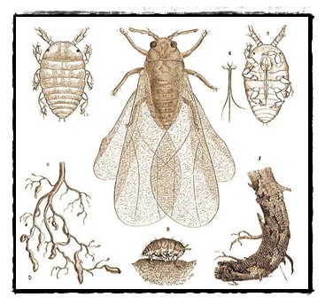 A filoxéra, vagy szőlő gyökértetű életciklusai, és kártétele a szőlő gyökérzetén