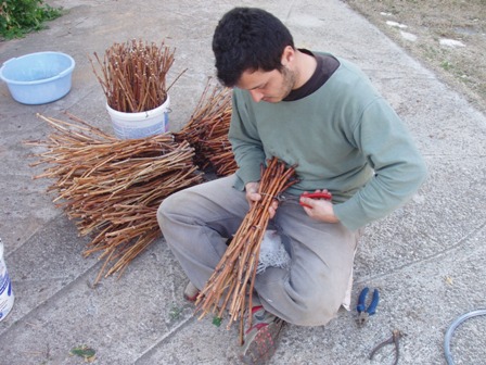 Metszéskor a jól fejlett, érett vesszőket kötegekbe rakják.
