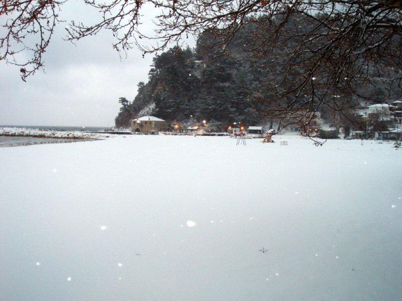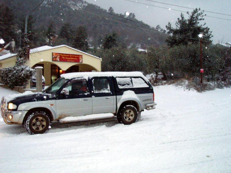 E szűk kis sikátoros meredek hegyi utakon havat takarítani biz nem illik. A kitaposott hó a legbiztonságosabb.