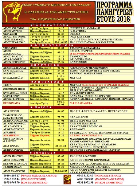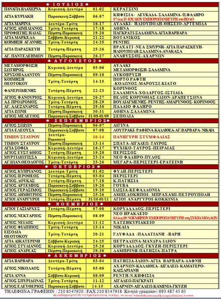 A búcsúk dátumok szerint itt görögül vannak feltüntetve. De a honlap linkjén egyéb nyelven is kereshetnek az érdeklődők. Ez a táblázat az egész országra vonatkozik. Léteznek csak helyi szentek, így azon szenteket csak azon a helyen ünneplik.