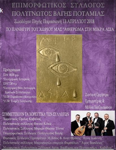 Ez egy nagyon jeles ünnepe a szigetnek és a falunknak. Az Ypszárióról megszámlálhatatlan forrás fakad, de a fő folyóág Potámia felett van, így az annak emlékére állított templom is ott van. Adena vagy más néven Levki - ősi Potámia falu kezdeténél van a templom. Nem tudni, itt a szigetünkön e búcsú hagyománya milyen régi időre nyúlik vissza. De azt tudjuk, hogy a katonai hunta idején a zenés-táncos búcsúk tilosak voltak. Ez azt eredményezte, hogy egy-egy ilyen egyházi ünnepség hagyománya kezdett elsorvadni. Majd a katonai rezsim korszaka után a falu ma 50-60 éves lakosai, kik akkor 20-25 évesek voltak, egy hordozható elemes kazettás magnóval és jó kedvükkel elkezdték feleleveníteni a hagyományt.