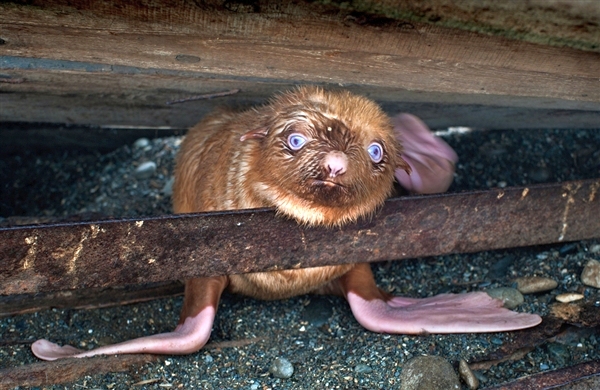 Akármilyen furcsán hangzik, előfordul, hogy a természet nagyon kemény ... Igen! Ez a kis állatka igenis egy pár hetes születésű kis árva fóka. Az igazság az, hogy tényleg nem olyan, mint minden más fóka. Láthatólag albinismoban szenved.