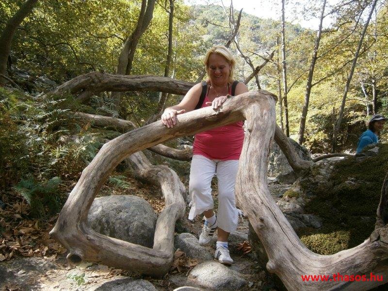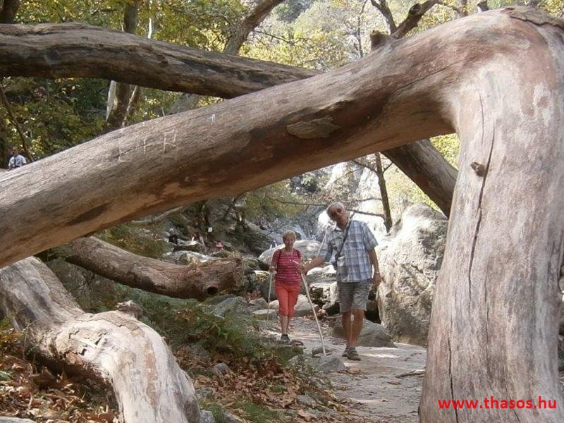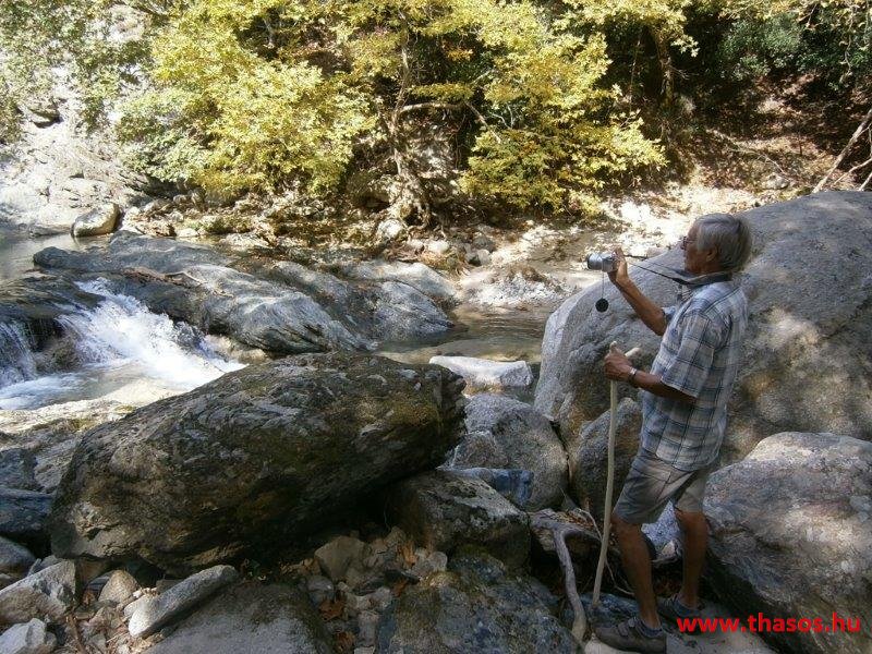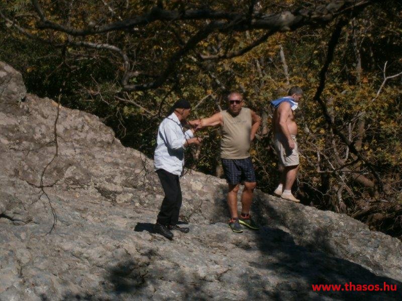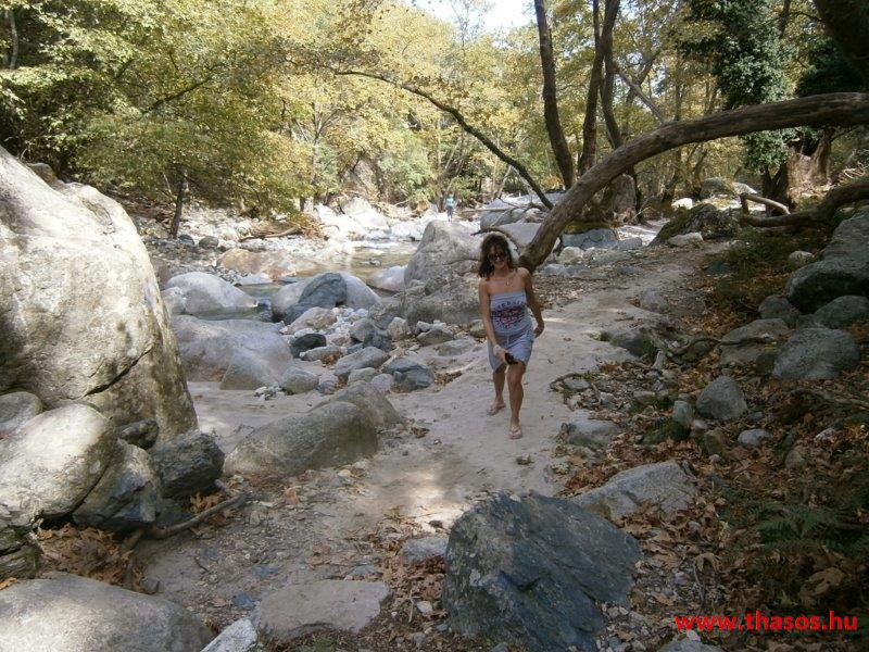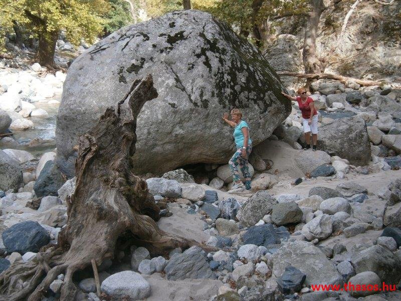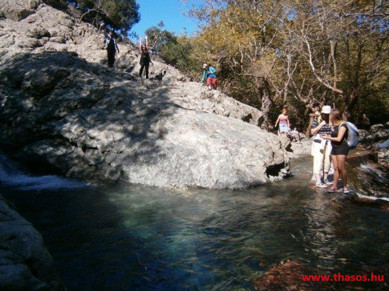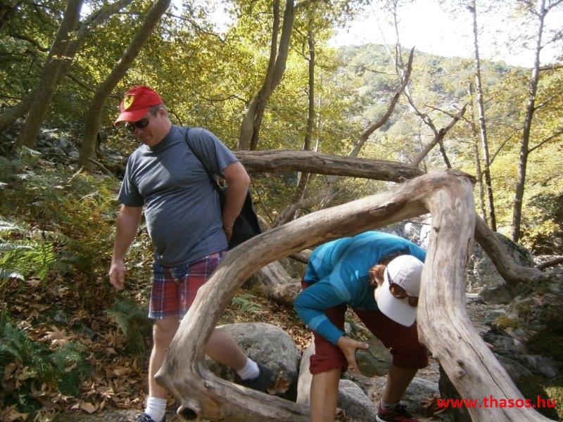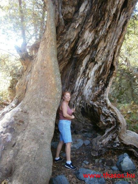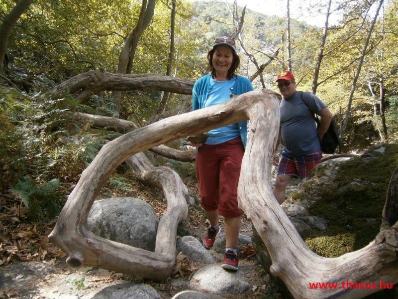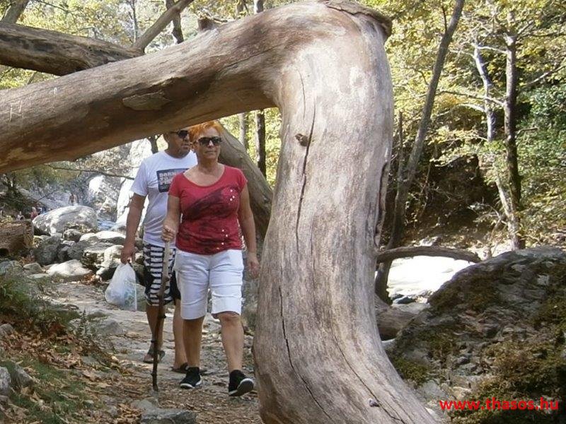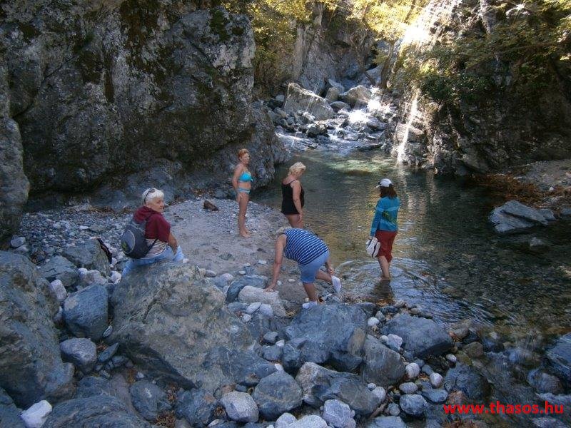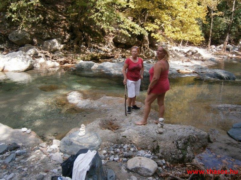 Gyalogtúra a Gria Vatrához. Ez kb 5 km-es nagyon könnyű gyalogtúrát jelentett a szállásunktól. Különlegességei a hatalmas platánfák voltak. Thassos szigetén is hatalmas platánfák nőnek, de ekkorát, mit ebben a völgyben, sehol nem láttunk még. Minden fája legalább tíz ember ölelésnyire nőtt. Ott sétálva termetes lombjai alatt valóban az az érzetünk van, hogy vidám erdei manók is laknak öblös törzseik odúiban.