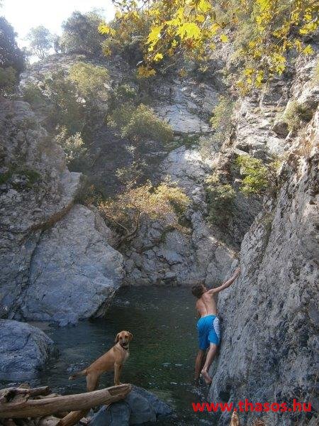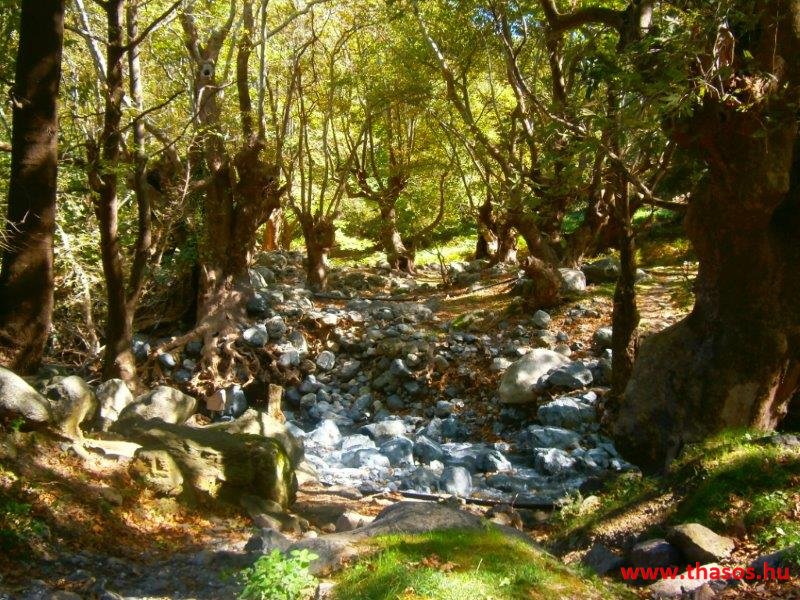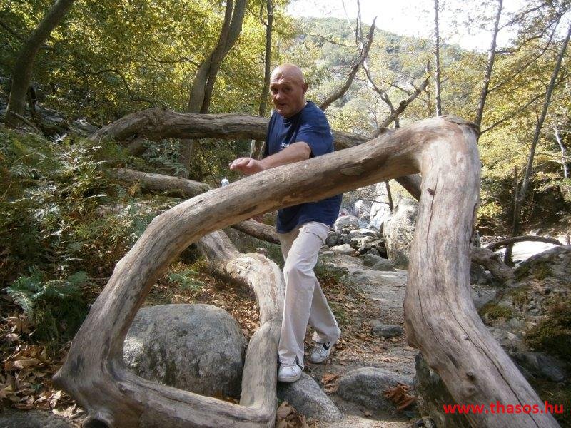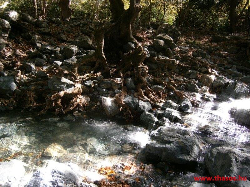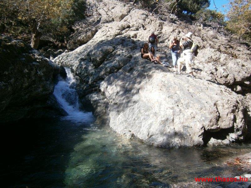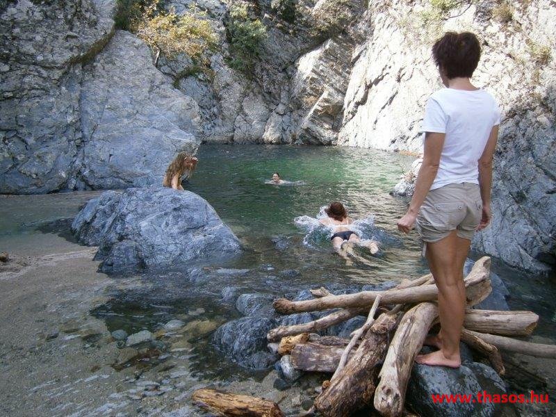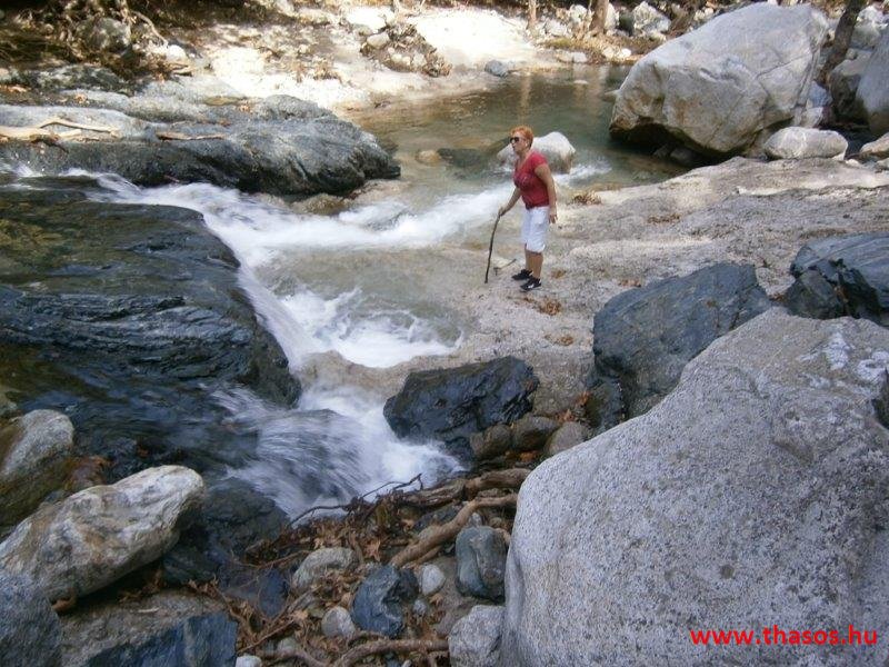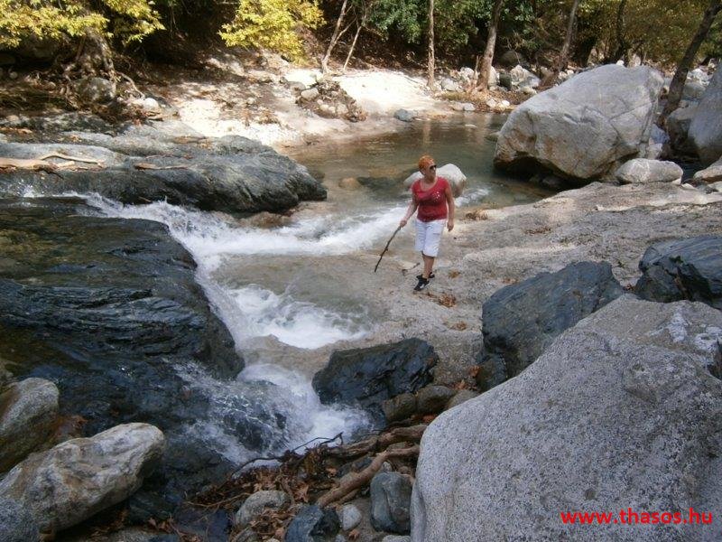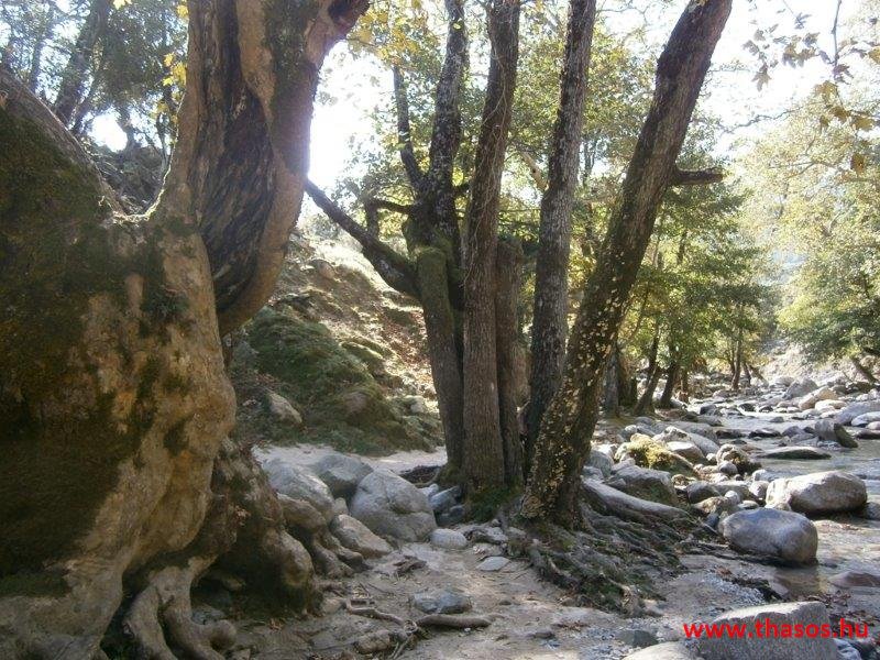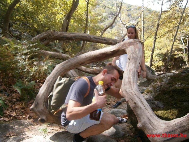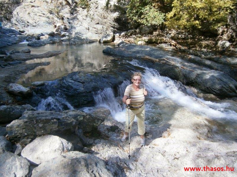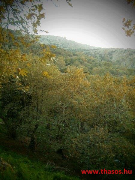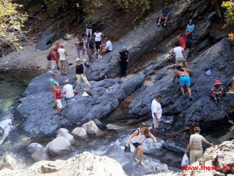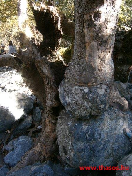 Gyalogtúra a Gria Vatrához. Ez kb 5 km-es nagyon könnyű gyalogtúrát jelentett a szállásunktól. Különlegességei a hatalmas platánfák voltak. Thassos szigetén is hatalmas platánfák nőnek, de ekkorát, mit ebben a völgyben, sehol nem láttunk még. Minden fája legalább tíz ember ölelésnyire nőtt. Ott sétálva termetes lombjai alatt valóban az az érzetünk van, hogy vidám erdei manók is laknak öblös törzseik odúiban.