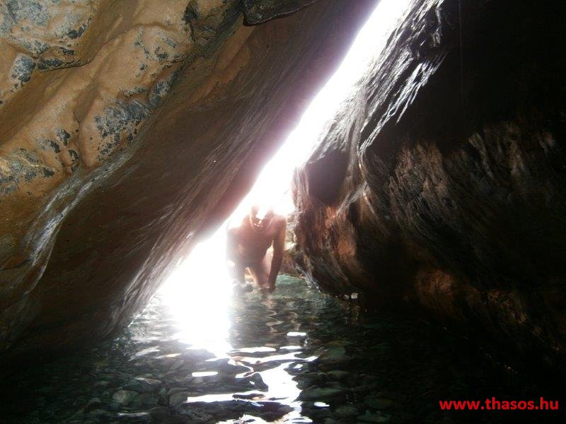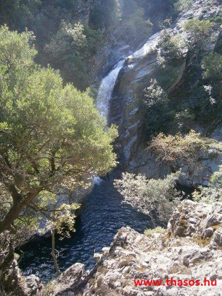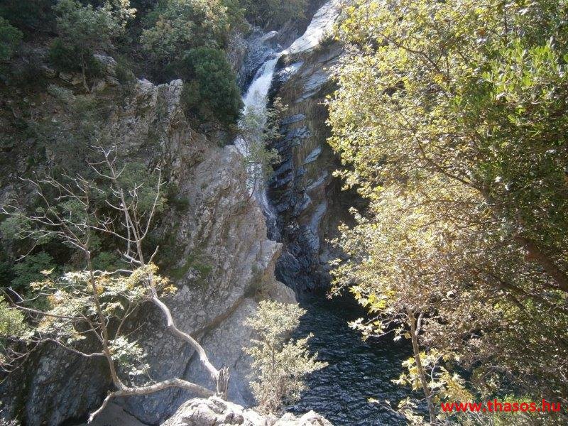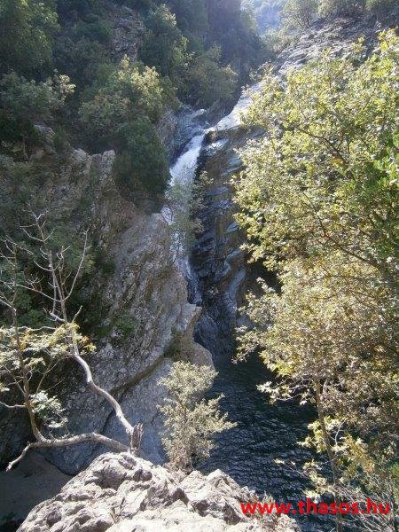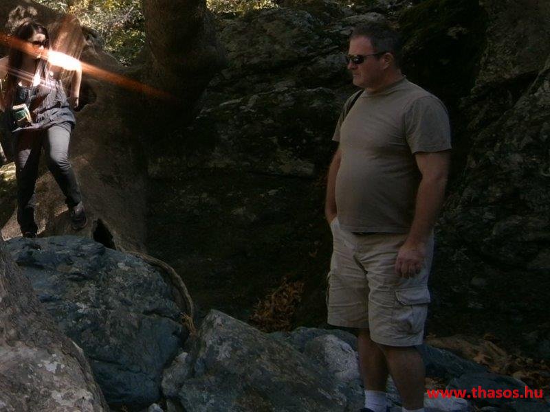 Reggel még a csoportos kirándulásra indulás előtt Pánosszal bementünk a kikötővárosba. Előző nap leellenőriztük a következő napi program útvonalát az autóbusz részére. A 4. napi program a Kaviri ásatás, majd Hora, és Kamariotissa volt. Az éjjeli kalandunk helyszínét kerestük útközben. Ekkor láttuk, hogy a mi falunk szurdokhegyei és a Voutiró-szurdok közt létezik egy másik szurdok. Vízesése két szakaszban zúdult alá. Mindkettő ilyen távolból is kiszámolható volt, hogy legalább 50-50 méter magasról esik, és az alsó legalább 5 méter széles vízesés volt. Kitérő utunkról visszaérkezve, immár a csoportra várva Angelostól megtudtuk, hogy régebben ott is volt farmja. Ano Kariotesből vezet oda egy hegyi ösvény, kb 10 km gyalogút. Igen, alá lehet menni a vízesésnek, de most ne tegyük. Nagyon rossz oda az út, és szükséges a helyi hegyi vezető.