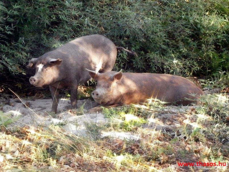 Elfáradva, boldogan kezdtük hát újra a Foniás-deltában a sétánkat az ókori romos várhoz. Két kövér szőrös vadmalacot riasztott el csoportunk. Kecskét, birkát, libákat, tehenet láttunk már szabadon legelni, de ily hatalmas disznókat még sohasem. Nevettünk is rajtuk. Ha nem ismertük volna a hely történetét, azt hittük volna, hogy ez a malacpár a partot őrző kastély elvarázsolt királylánya és királyfija. Még egy kicsit gyönyörködtünk a partban e szürkületi órában, majd nem megvárva, mikor jön a gonosz boszorka varázspálcájával, hogy bennünket is elvarázsoljon, buszra szálltunk és hazaindultunk.