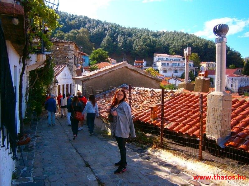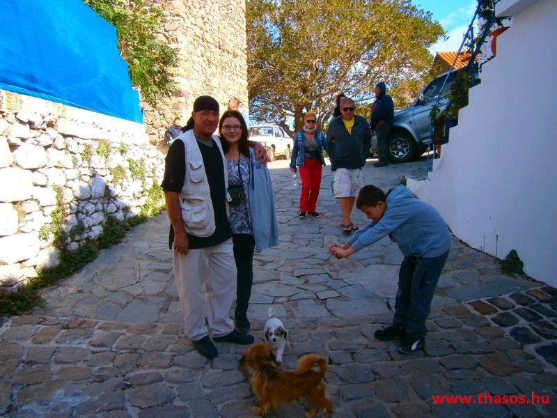 Vendégeink vágytak egy kis vásárlásra. Főszezonban léteznek ipar- és népművészeti üzletek, modern bárok, mára minden zárva volt. Amit nyitva találtunk, azt is Angelos családjának köszönhetjük. A kávézó, hol mi már jártunk, a húga tulajdonában állt. Egy ajándékárus üzlet tulajdonosa szintén egy unokatestvér. Sétánk az öreg házak között a girbe-gurba utcákon történt. Mégis egy különleges élménnyel távoztunk innen.