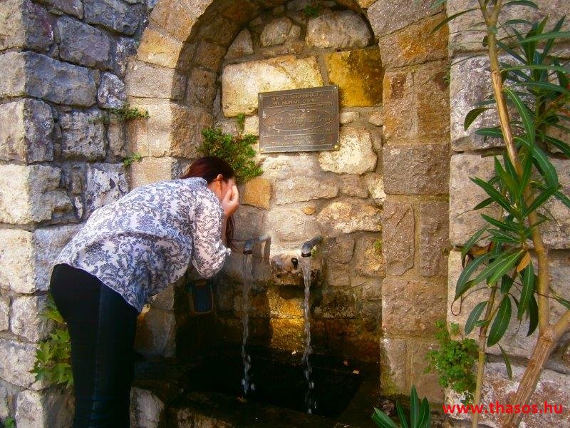 Itt Horában van egy másik kút a várhoz vezető úton. Ez hideg víz. A réztáblán az írás mit ír? Ki ebben a vízben arcát mossa, minden bűnét magáról lemossa. Mennyire igaz a gondolat, azt nem tudom. Pános nevetve kérte tőlem, olvassam el visszafelé is a szöveget. Meglepve olvastam, visszafelé is ugyanúgy kell olvasni. A párom szerint ez az egy ógörög mondás az egyetlen, ami oda-vissza olvasva ugyanazt jelenti.