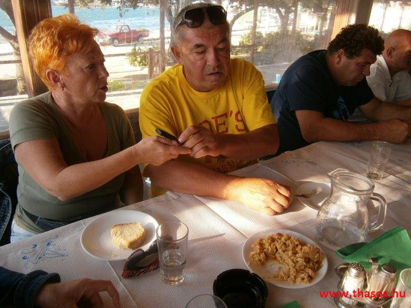 Így volt ez valamikor az egész országban. Nem volt étlap, hisz kevés volt a választék és a vendégek is állandóak voltak. Behívta a vendéglős az éhes látogatóját, hogy nézze meg, ma mit főzött. Ő szemre vagy kóstolással kiválasztotta, mit szeretne fogyasztani. Azt egy blokktömbre felírta a házigazda. Nem volt szükség nagy étlapra. Csak a saláták és az italok voltak azon feltüntetve. Nem hiszem, hogy Samothrákin túl él még valahol ezen módi. Vendégeim kicsit furcsállották, de személyes kedvessége miatt megszerették a nyaralási időszakunk végére. A vendéglős mindig megbeszélte velük, hogy holnap mit fog főzni. Ez Therma falura igaz. Főszezon időszakban más a helyzet. akkor sok kis taverna működik, így a személyes kérés és megbeszélés csak a törzsvendég kérésre él.