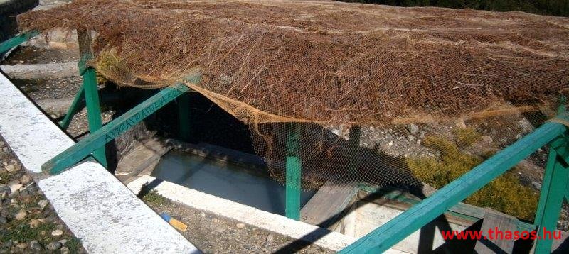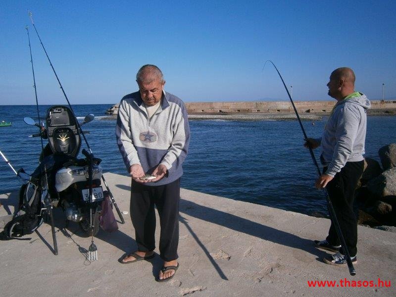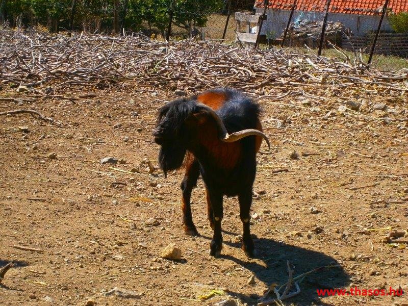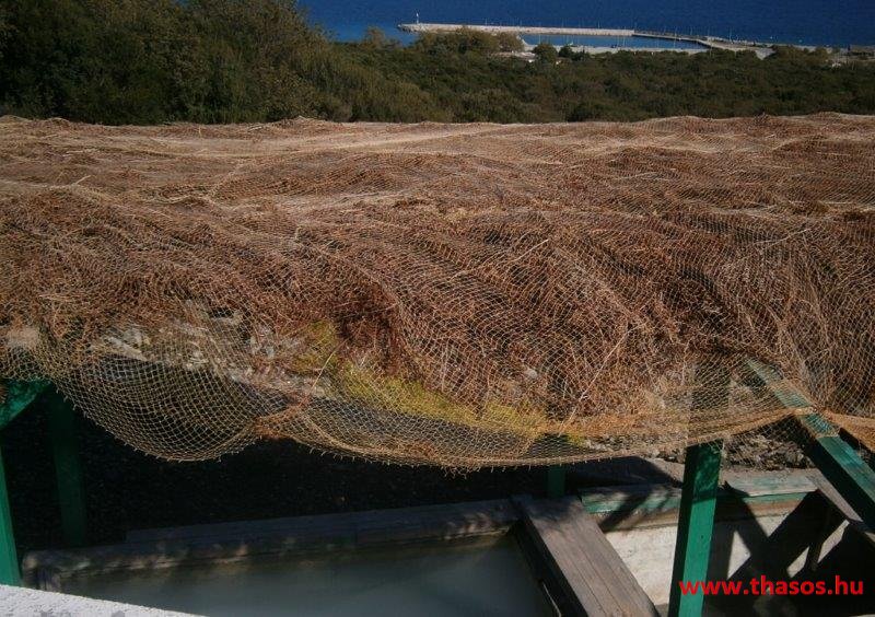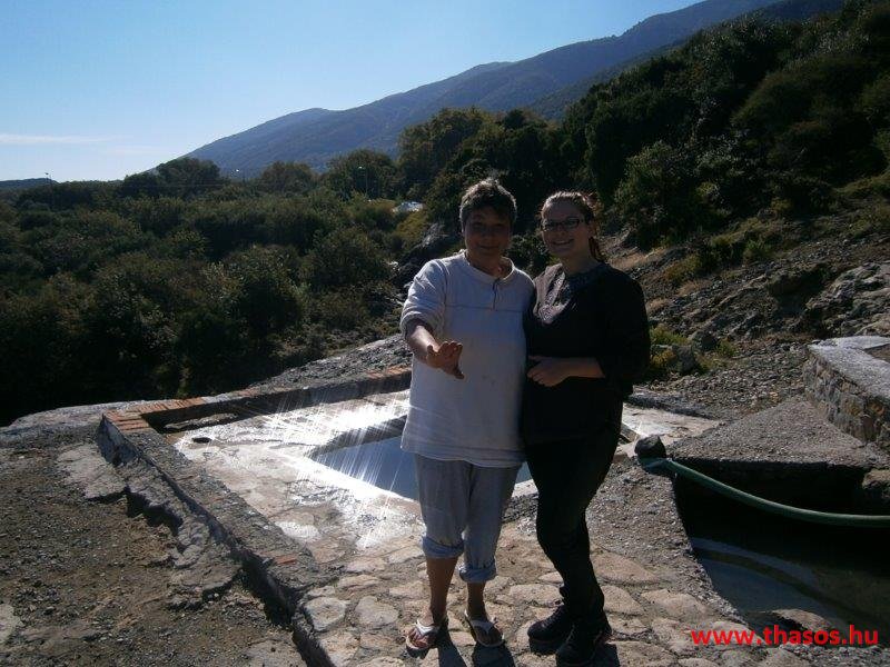 Utunkon visszafelé a magán sajtüzembe mentünk. Ez sem látogatható mindig. Ide is telefonos értesítést kellett adnom, hogy mikor érkezünk. A kicsi üzlet udvarán kértünk egy kóstolót. Háromféle sajtja, fetája, túrója volt a gazdának. Mondanom sem kell, miután több soron jóllaktunk a sajtokkal, mindent kiürítettünk a hűtőkből. Még ami a raktárjában lógott sózott érlelt sajt, mit az ínyenceknek tartogatott, azt is elvittük tőle. Ebből az üzemből csak a helyiek vásárolnak. Nem jut nagy kereskedésbe. A termékei igazi házi ízek. Minden vegyesen kecske- és juhtejből készült. Milyen árban voltak? 13 Euró/kg az a sajt, mit nyersen eszünk és az is, mi pikáns. 5 Euró a nyers friss buci formájú sajt, mit reszelünk a tálas ételekre. A szárított reszelni való 7,5 Euró/kg. 5 Euró/kg volt a feta vagy túró. Normál árak mindenből. Ami drágább a megszokott áraknál, az a méz volt. 9-10 Euró/kg. Virágméz lehetett vegyesen és kicsit lágyabb, mint itt Thassoson. Az olívaolaj 20 Euró/5 kg, 6 Euró/kg. A mézes szirupos gyümölcsös édességek szintén drágák voltak. 9-14 Euró/kg árban lehetett azokat kapni. A termékek mind házilag, azaz kisüzemileg készültek teljesen hagyományos módon.