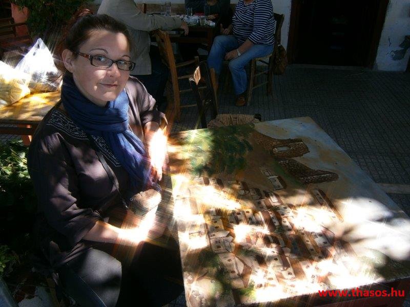 Mikor elsőként voltunk Pánossal a szigeten, nem sokat tudtunk róla. Ott laktunk, ahol partot fogtunk. A kikötői parkolóból kijöttünk és mindjárt a közelben a halastaverna, hol most vacsorázott a társaságunk, ott laktunk. Olcsó volt a szállás, élettel teli a környék, strand közel, de mégsem tetszett a hely. Akkor körbejártuk a szigetet délen is és kelet felé is. Az Arhondissa szállásba szerettem bele akkor, Pános meg Therma faluközpontba. Elhatároztuk, mikor újra idejövünk, csak ott lakunk. Fantasztikus élmény volt. Novemberi időszakban mentünk, drága árat fizetve a szállásért, de megérte. Szerettük és a szép gondolatok akkor itattak át a szigetről, mikor a szállás előtti partszakaszon bóklásztunk nap mint nap. Utána újra oda mentünk. Immár október első hetében. Három alkalommal jártuk körbe a szigetet, mindig és mindig ezt a helyet éreztem, hogy itt kell laknunk.