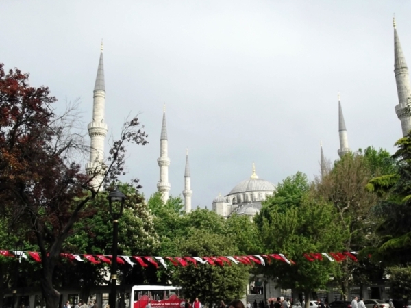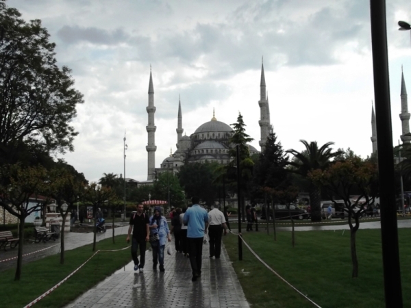 A Kék Mecset is olyan, hogy látni kell. Nagyszerű látvány, nagyszerű élmény. Csak egy kicsit el kell vonatkoztatni a körülöttünk taposó turistáktól, mert az imahelyre nem lehet bemenni, csak a szélén, és meghatározott bejárat és kijárat van. De szerencsére bemenetelkor is vannak padok a cipőlevételhez, meg a kimenetnél is a felhúzáshoz, bár itt valamiért kevesebb