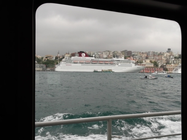 Aztán átvergődtünk a főúton a kikötőrész felé. Kerestük az Aranyszarvon közlekedő hajó megállóját. Elsőre nem nagyon találtuk, de végül sikerült meglelni. Tudtam, hogy kb. óránként közlekedik, de persze elfelejtettem elvinni az itthon kinyomtatott menetrendet… vártunk egy csomót.