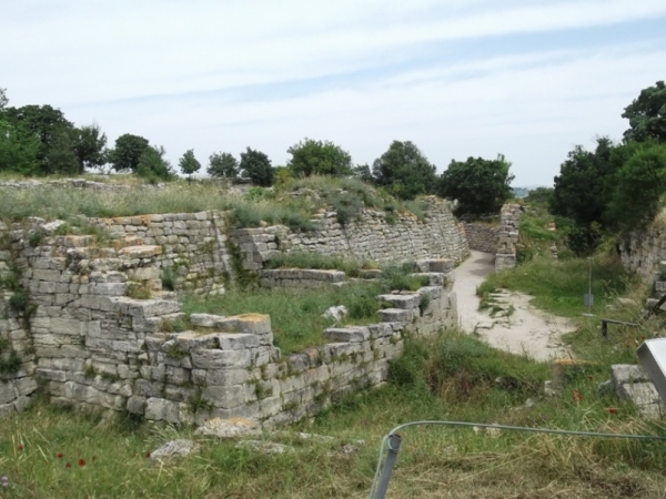 A terv az volt, hogy ahogy a hajóról lehajtunk, ott kell lenni parkolónak, megállunk, és gyalog elsétálunk a parton addig a falóig, ami a Trója című filmben szerepelt. De nem volt parkoló, nem volt utca balra (ill. útépítés volt), messzebb meg már a fene kóvályogjon visszafelé. Így lemondtunk a filmbeli falóról, irány Trója. Csak 30 km. Sok helyen útépítés folyik, főútvonal, átépítik ezt is kétszer két sávosra. Ahol kész az út, ott rendőrautó figyel. Nem láttunk száguldozó őrültet.