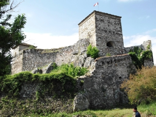 Először elmentünk Pirot várát megnézni. Érdekes, de csak körbejártuk. A vár mellett van egy lepusztult, öreg úszómedence. A lépcső két korlátján tök egyforma tartásban két varjú… de ezek ismerik ám már az embert, nem várták meg, amíg fölemelem a fényképezőgépet…