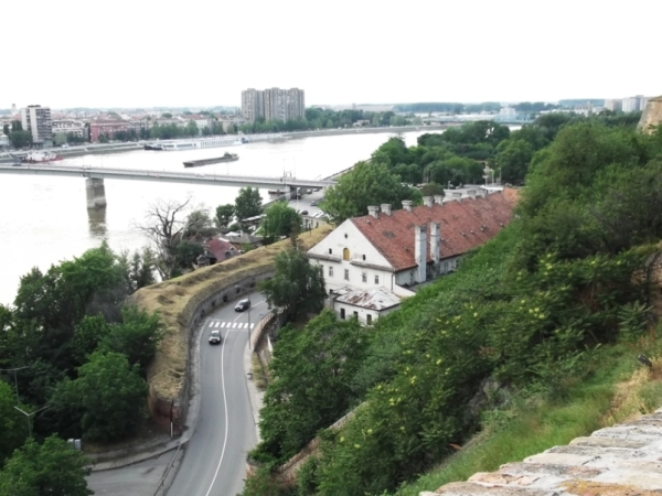 A vár nagy, a kilátás szép. Szemben Újvidék, alattunk a széles Duna. De életem párja, mikor meglátta a lépcsőket, megtagadta a fölmászást. Leült a Szent György templom mellett. A templom lépcsőjén éppen modellfényképezés folyt. Nem volt éppen hőség… szegény fiatal, hírnévre vágyó csaj majd’ megfagyott az egyszál semmiben, ami rajta volt, míg a stáb persze rendesen föl volt öltözve.