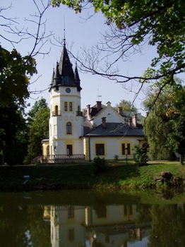 Csalódtunk, nem volt, sőt boltot sem fedeztünk föl elsőre az út mentén, egészen Olszanicáig mentünk, ahol egy jó nagy üzletet találtunk. Később persze kiismertük a környéket. De ha már most elmentünk eddig a városig, akkor keressük meg a kastélyt. A Lengyelország útikönyv címlapján, sőt más prospektusokban is, egy kastély képe van, amiről sehol nem lehet rájönni, hogy hova valósi épület. Nem műemlék (1905-ben épült), ezért sehol nem tesznek róla említést, csak mutogatják a képet… Teljesen véletlenül jöttem rá, hogy hol van.