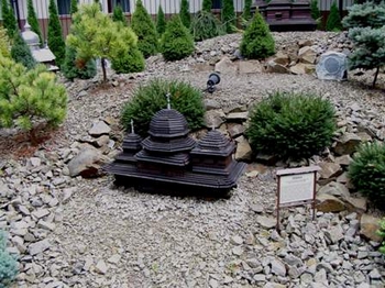 A terület másik oldalán pedig, úgy tűnik, a lengyel pápa kezdeményezésére, a terület fatemplomainak makettjeit állították ki – az összeset. Az utolsó, külön gruppban vannak azok, amik ma Szlovákia területére esnek.