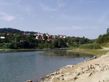Utána elmentünk az elsőnek létesített tó mellé, Myczkowce falu felé. Hát ott is útépítés volt, többször megakadtunk, mire tovább lehetett menni, kocogtunk egy ronda nagy busz után. Ennek a falunak az északi határában van egy Caritas nevű létesítmény.
