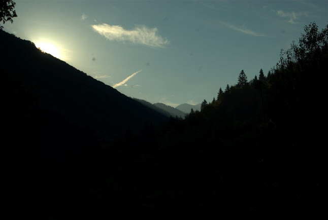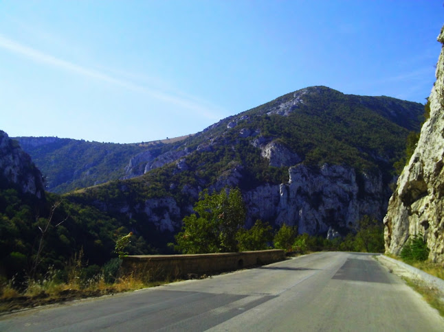 Mi meg gurulunk a folyó mellett. Ha szembe is vele. Alagutak vágják keresztül magukat a Pirin-hegység sziklatömbjein, hidak szelik át a folyót, ha játékos tánclépéseikben helyet cserélnek. Az út és a folyó. Hol jobb, hol baloldalon kanyarognak egymás mellett.