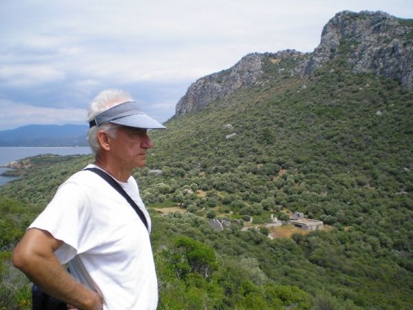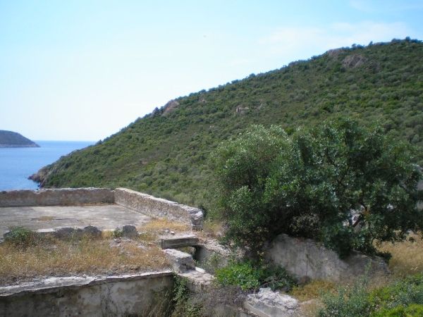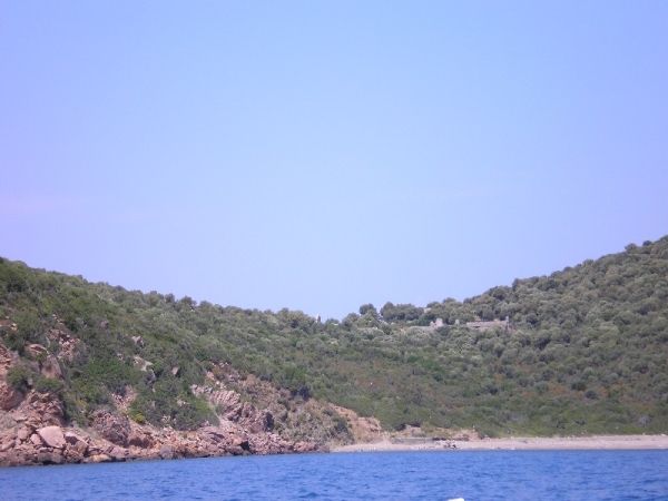 Otthon azután lázasan kerestük a Google Földjében a halvány utacskára utaló jelet /így láttuk meg az athoszi furcsa képet/ de nem találjuk. Az idén még az erődítményt sem találtuk meg, beöltöztünk bozótjáró ruhába, mert az úton olyan szúrós növényekkel találkoztunk, hogy farmeren keresztül a gatya alá is befurakodtak. Majd jövőre! A terv: az ütegállásokat a tenger felől kell megközelíteni, viszünk ruhát, túracipőt, a kajakot otthagyjuk a kikötőben és felmegyünk!