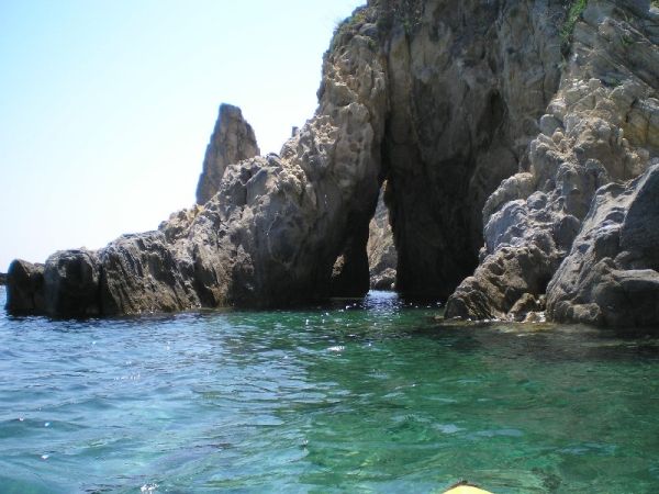 A kajakkal nyolc-tíz órát úton vagyunk, már eljutottunk a Sithonia félsziget végére Marathias-ig, az idén befordultuk Kalamitzi felé és megnéztük a Kartolia partját. Ez a saskeselyűk sziklái. A parton végighajózva lehetőségünk volt bemenni olyan keskeny sziklavágaton, ami mögött lagunaszerű volt a tenger, körbehajóztuk és a másik végén kicsusszantunk, volt olyan ahol épphogy elfért a kajak. No, de ami minket évről évre még mindig izgalommal oda vezérel, az az én párom másik hobbija, az történelmi indíttatású. Amikor Toroni történetével ismerkedtünk, megtudtuk, hogy a "Likitoszi-félszigeti vártól kb. félórányira egy második világháborús német erődítménybe ütközünk, nagy föld alatti termekkel, és ütegállásokkal "Portó Kufó ismertetőjénél" - a helyi friss halkülönlegességeken kívül a helyiektől ki tudunk halászni történeteket a titokzatos barlangokról, a német flotta meneküléséről a 2. világháború idejéből", hát ezeket keressük. Az egyik hajóutunkról hazafelé a délutáni napnál megláttuk az ütegállásokat, a reggeli fénynél nem volt látható, mert a fák takarták, körbejártuk a partot és felfedeztünk egy öblöt, ahol kikötöttünk, és ott volt az erődítmény kikötője, ott volt egy német lőszerszállító kéttengelyes pótkocsi. Fel akartunk menni az erődítménybe, de a hajót nem akartuk otthagyni, na meg szúrós bozóton nem tudtunk volna átkelni. Elhatároztuk, a szárazföld felől megyünk. Másnap elindultunk, járható út nincs, bozótoson keresztül törtettünk a feltételezett irányba és megtaláltuk, olyan boldog voltam, hogy a könnyem is kicsordult, fantasztikus volt az épület, stratégailag a legjobb helyre építették. A kufoi öblöt, a toroni öblöt úgy megfigyelés alatt tartották, s őket senki sem látta. A földalatti termekbe nem sikerült lemenni, mert nem volt lámpánk, és valami veszélyjelző tábla volt kirakva.