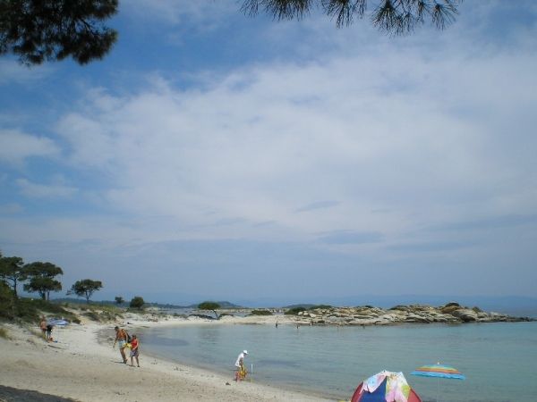 2004 május végén voltunk utoljára Sartin, évek óta jártunk oda, de nagyon megváltozott. Zajos lett, pihenni nem lehetett, és ami a legfontosabb, a kajakkal már nem volt felfedezésre váró part. Augusztusban bementünk az Apollon Travel utazási irodába és akkor ajánlották Toronit. Első pillanatban beleszerettünk, kóstolgattuk a terepet, egyre messzebb mentünk a kajakkal, nyolc-tíz öböl volt, ahol kimehettünk a partra és összeszedhettük a rengeteg csigát, kagylót. Csak ilyen "jármű" tudott kimenni, mert ennek nagyon kicsi a merülése és nem akad fel a köveken. A település is nagyon tetszett, 14 család lakja, az apartmanok tulajdonosai thessalonikiak, nyaralni jönnek csak Toroniba, a hétvégeken ha lejönnek, nem igénylik az üzleteket, van egy-két taverna, nagyon családias, ott vacsoráznak és a csendet akarják.