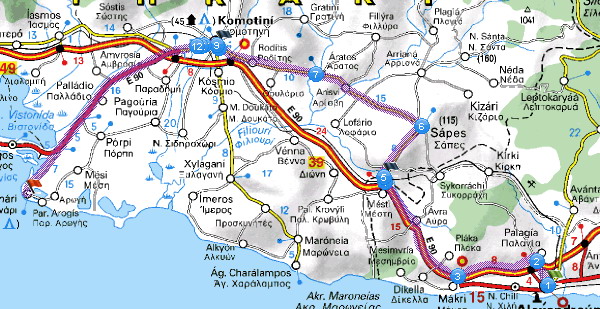 A rákövetkező napon messzebb mentünk, Alexandroupoli környékére. Kb. Xanthitól már kész az autópálya a török határig (csak egy rövid szakasz hiányzik), itt-ott ugyan építettek rajta valamit, Alexandroupoli előtt, de nem hosszan. Itt – a görögországi nemzeti utak és régebbi autópályáktól eltérően – táblákkal jelzik, hogy 120 helyett 130 a megengedett sebesség. Alexandroupoli előtt a Makrinál kiépített lehajtónál mentünk le a part felé. Onnan még nyugatra, hogy a legnyugatabbi ponttól haladjunk kelet felé.