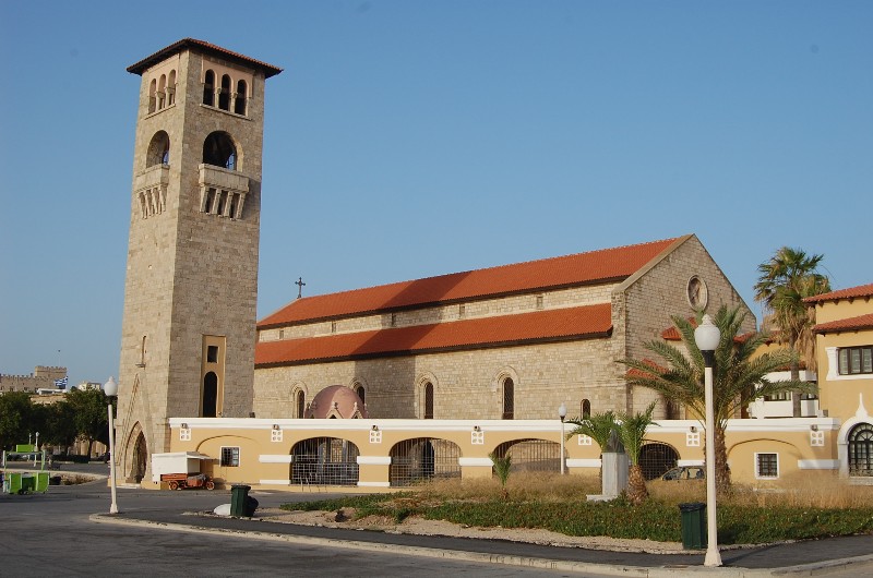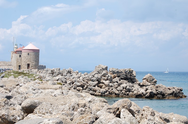Ha innen végigballagunk az Odosz Árisztoteluszon egy másik térig, akkor ez már a Zsidó Mártírok tere. A tér neve azok emlékét őrzi, akik a második világháborúban Auschwitzban veszítették életüket. Kb. 2100 zsidó. Az Óvárosból kiérve a Mándraki kikötőbe érünk, festői látvány a szarvaspárral, a szélmalmokkal együtt. A kikötő elején emelkedik a Szent János templom, a kormányzói palota, a városháza és a Nemzeti Színház. Na, ezek mellett laktunk mi, ezért volt ez a szálloda a legjobb helyen, ahol csak lehetett.