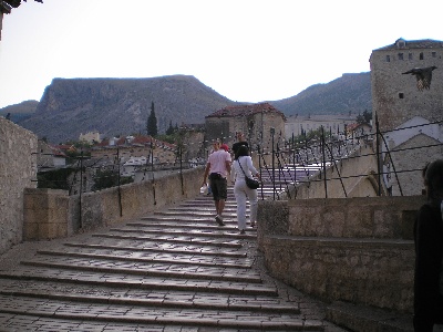 Este indult az autóbusz, reggel 6-kor Mostárban voltunk. Ott volt egy rövid városnézés, átmentünk az újjáépített „régi” hídon az óvárosba, gyönyörködtünk a smaragdzöld Neretvában. Gyönyörű hely. Volt szerencsém látni a háború előtti Mostart. Korcsulára többször mentünk, s ha a dalmát tengerpartra mentünk, akkor is a Neretva völgyén átmenő utat használtuk, s Mostárban mindig megpihentünk. Borzasztó fájdalmat, dühöt éreztem, amikor hallottam a város, az öreg híd elpusztításáról. Most azt tapasztaltuk, hogy szép lassan kezdik a sebeket begyógyítani, és némiképp az eredeti helyzetet visszaállítani.