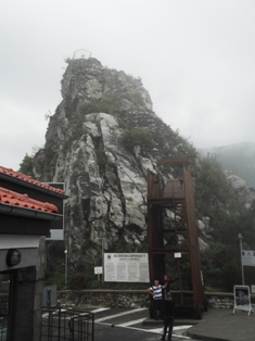Meg kellett volna ott állni egy fényképre… de késő bánat. A hegy „szoknyáján” visz föl az út, addig, amíg nem kezd meredekebb lenni, ott van a parkoló. Innen, ebből a szögből sajnos nem ugyanazt a látványt nyújtja. Fizetős a parkoló, és csak néhány szuvenírárus van a szélén, azok is többnyire tenyérnyi darab ásványokat árulnak. A végén vettünk egy-két csillogó darabot, mert még mindig azt hittük, majd lesz szokásos ajándéktárgy is…