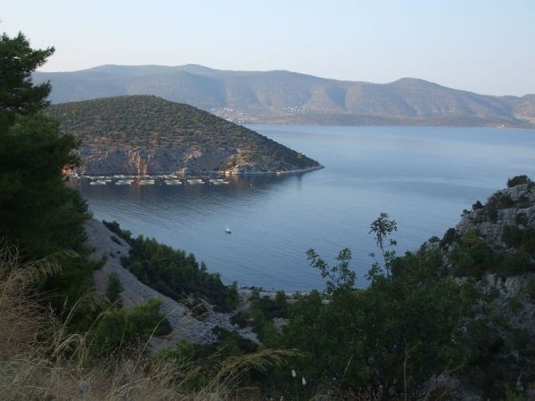Utunkat folytatva, fürdőprogramot javasolok, és ennek említése senkinél nem vált ki tiltakozást. Még otthon feltérképeztem a közeli partokat, így elsőnek a legközelebbit vesszük célba, ami csak néhány kilométerre van. Percek alatt meg is érkezünk Fournoi falucska tengerpartjára. A part szép, hullámzás szinte alig, de beigazolódik a sejtésem, a terep köves. Előzetesen képeket nem leltem a helyről, így már eleve gyanakodtam. Erre az esetre készültem B tervvel, de előbb még erről néhány szó. Elég hosszú, nyugis partszakasz, garantáltan békés. A hozzánk közeli végében apró dombocska, amin jó görög szokás szerint kis templom, néhány pad, és néhány árnyat adó fa teszi teljessé az idillt. Lenézve látjuk, hogy a tengerparti rész tovább folytatódik, végét egy nagyobbacska domb zárja le. Ez egy különleges hely, belsejében barlang rejtőzik, nem is akármilyen, ősember-barlang. Franchthi barlang a hivatalos neve, és valóban őskori maradványokat találtak benne. Az odajutás meglehetősen kalandos, mert csak egy keskeny ösvényen lehet megközelíteni, végig a domboldalt követve. A képeken a belseje is elég sziklásnak látszik, így jelen esetben kísérletet sem teszünk a becserkészésére.