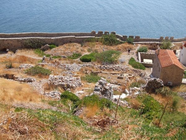 A hegy tetején egy valamikori kastély és erődítmény romjai állnak, még 1249-ből. Ez az akkor Spártában élő, akkori frank fejedelem elhatározásából épült, és fejlődött lassan virágzó várossá, benépesítve, beépítve szinte az egész környéket, és ezzel együtt a hegyoldalt is. A településnek jelentős szerep jutott a történelemben, harcoltak érte a bizánciak, a törökök, és rövid ideig velencei uralom alatt is állt. A folyamatos csatározások közepette is fenn tudott maradni, csak a XIX. században kezdett elnéptelenedni. Ma már csak a romjai láthatók a valamikori pompának a hegy tetején. Hogy egész pontosan mennyire romos, azt sajnos, most nem láthatom meg, mert a józan eszem azt diktálja, hogy örüljek, ha egyáltalán le tudok menni a hegyoldalon, nem hogy még felfelé induljak előtte.
