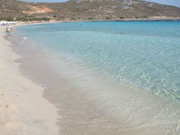 Pounta kikötője igazán aprócska, inkább csak egy móló, ahová kiköthet a hajó. De az öböl, hát az valami mesés. A víz sekély, a színe pedig a türkiz kék és zöld között valahol. Elafonissos nem volt mindig sziget, ez egy régi-régi fölrengésnek köszönhető. Sok időnk nincs bámészkodni, mert máris jön a kompunk. Nem vagyunk sokan, így nem kell feltolatni, elég a fedélzeten irányba állítani az autót. A jegy nem drága, nem egészen 20€, négyünknek, autóstul.