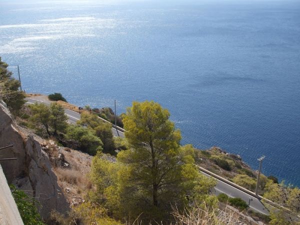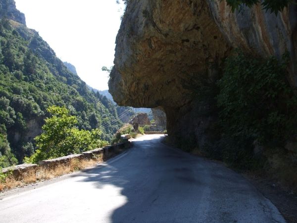 Innen nem visszafelé indulunk, hanem át a Tajgetoson, Kalamata felé. Ez Görögország egyik legszebb útvonala. És tényleg az. Kanyargós, néhol keskeny, de jó minőségű úton haladunk, nem sietünk, mert látni szeretnénk, merre is járunk. Néhol egyszerűen kivájták a sziklát, hogy elvezethessen alatta az út. Megállni csak elvétve lehet, mert ehhez nem adottak a feltételek. Azért a sziklaalagútnál kiugrom a kocsiból, és az út peremén bandukolok tovább, sűrű kattintgatások közepette.