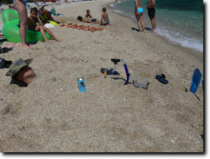 Délelőtt elmentünk autóval is a "márványpartra". Sajnos sok volt a méh, és az ismerős egyik fiát meg is csípték, ezért ismét volt egy kis szóváltás, ők elviharzottak, mi pedig maradtunk még. Találtunk tengericsillagot, amit megmutattunk a parton lévőknek, majd visszavittem a mélybe.