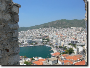 Sikerült elég korán elindulni, és elérni Prinos-ba, hogy átmenjünk Kavalába. A szárnyashajó gyors és kényelmes közlekedési eszköz a sziget és a szárazföld között, bár egy kicsit drágább, mint a komp. Egyszer ezt is ki kell próbálni. Prinos és Kavala között a felnőtt jegy 6,5 Euró, a gyerek pedig 3,3 Euró. Kavalában sétáltunk egy nagyot. Bementünk a piacra és a halpiacra körülnézni, majd felmentünk a várba. A várba vezető szűk és meredek utcák hangulatosak ugyan, de a melegben eléggé fárasztóak. A várba belépővel lehet bemenni, melynek ára: felnőtt 1,5 Euró, gyerek 1 Euró. Túl sok látnivaló nincs bent, de a kilátás pazar a várfalakról.