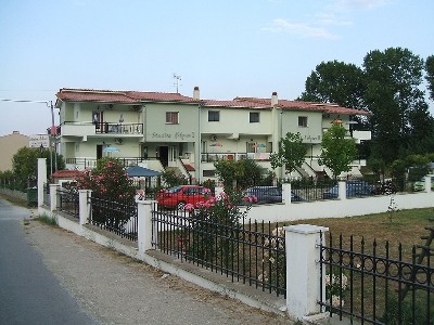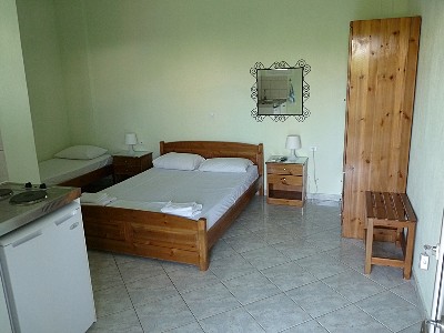 Végre megérkeztünk az Aethrion apartmanhoz. Kb. 16-an szálltunk le. Egy nagyobb társaság (fiatalok és szüleik ill. barátaik; egy három tagú család és mi, szintén hárman). A 103-as szobát kaptuk, ami a földszinten található.