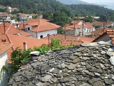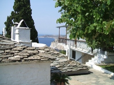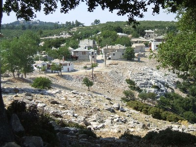 Az egész öblöt beláttuk Skala Potamiától Skala Panagiáig. Gyönyörű, szavakkal le nem írható élmény. Valaki fennhagyott egy távcsövet, azzal még az apartmanunkat is megkereshettük a távolban. Az időjárás is kezdett jobbra fordulni, kikandikált a nap a felhők mögül. Gyönyörködtünk, fényképeztünk. Egyszer csak Ági kiabálására lettünk figyelmesek, hogy menjünk már, mert még sok látnivaló vár ránk. Vonakodva bár, de elindultunk lefelé. Az Ypsariótól egy kősivatagon keresztül jutottunk el a félig halott hegyi faluba Kastro-ba. Valaki egyszer azt írta egy másik faluról, hogy ott állni látszik az idő. Nekem itt támadt hasonló érzésem.