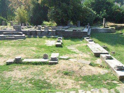 Visszatérve az ösvényre, továbbhaladtunk egy „kis szirének medencéje mellett”. Benne a víz smaragdzöld színű, az alja algás. Mentünk tovább az erdei ösvényen, kerestük a romokat. Hamarosan rájuk is bukkantunk. A felső épület szentély lehetett, sajnos tényleg csak a romjai vannak már meg. Lejjebb érve több rommaradványra és egy sírkamrára találtunk. Jó kis túra ez így a félszigeten. A strandhelyünkre visszatérve ettünk egy jégkrémet és irány a tenger. A nagy meleg miatt délután fél 3 felé visszamentünk a szállásunkra, ahol a szieszta után kimentünk a helyi strandra. Este giroszt ettünk Lénánál.