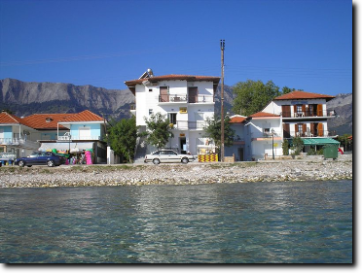 A félórával később induló hajóra jutottunk fel, szabályszerűen megváltott jeggyel. Jó kezdés. Sms Áginak - válaszul hívott, rendben van a szobánk. A komp mellett rikoltoztak a sirályok, lent a tintakék vízen vörös tarajokat vetettek a hullámok - ez Homérosz borszínű tengere? Limenastól szerpentin,egy falu (hú de szűk, merre kell menni??), két falu, oda le, a partra kell mennünk! Megérkeztünk lassan csorogva a házunkhoz, a felső erkélyről integetett az interneten frissen szerzett ismerős.