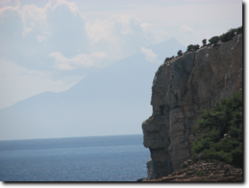 Végül 2002-ben úgy adódótt, hogy elmentünk Paraliára a boldogult emlékű Bella Tourssal. Nagyon élveztük, nagyon tetszett mindaz, amit a kirándulásokon láttunk, tetszett Paralia is, a vendéglátó görögök is. De ami a legeslegjobban tetszett nekem - életem legmeghatározóbb élménye volt - amikor megláttam az Olymposzt ! Hiszen ott laknak az istenek! És ottlétünk alatt mindennap láttam a Hegyet! A szobánkból a vizet nem, de az Olymposzt lehetett látni. Amikor először bementünk a strandon a vízbe, első dolgom volt megkóstolni, hogy milyen is az a sós tengervíz? Ki is köptem gyorsan... valóban sós! Viszont - igaz, az időjárás is oka volt, az ég fátyolos volt- egy hétig dühöngtem azon, hogy sehol nem látom a beígért legendás kéket. Az utolsó két nap mutatta csak meg magát. Elmentünk hajókirándulásra Skiathosra (remekül sikerült) - és az ég szürke volt, a víz szürke volt... és a partok tán még közelebb voltak, mint a Balatonon. Ezért akartam én a tengerhez menni? Az idegenvezetés is hagyott némi hiányérzetet, áldott emlékű öreg Wartburgunkat (de sokat mászkáltunk vele itthon!) is lecseréltük, így két év múlva saját szervezésben ismét célba vettük Görögországot. A párom egyfolytában azt hajtogatta, hogy ő csak a Tajgetoszra kíváncsi. Térképet elő : hát az egészen délen van! akkor egy nagy körutat kell tenni! Körbementünk a Peloponnészoszon és vissza. Nagyszerű szállásokat sikerült kifogni a tengerparton (máshol is), láttuk a vizet, hallottuk a hullámok moraját. Láttuk a nyílt tengert - végre ! Messze-messze csak a végtelen kék... de nem egyfolytában... és május végén csak két nap tudtunk fürdeni, nem fürödtem ki magam eléggé a tengerben... vissza kell menni!