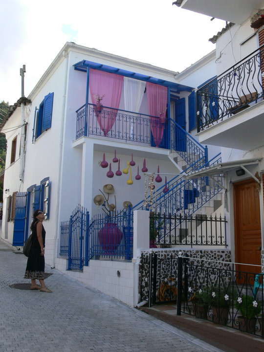 Kedd a strandon. Szerdán délután négyen összefogtunk és felbuszoztunk Panagiába. Épp akkor mondták, hogy nincs benzin úgy általában, volt, aki bérelt autót, motort és aznap mégsem tudott útra kelni, mások pedig kaptak benzint. Szerencsére a helyi busz járt, így simán felmentünk a hegyre falunézőbe és este pedig taxival jöttünk vissza, minden gond nélkül. Panagia csodaszép, engem lenyűgözött, hogy mennyire kreatívan építkeztek a hegyre és milyen szépséget alkottak, milyen jó ízléssel és harmóniával építették és díszítették a falut. És még a turisták mászkálása sem törte meg a faluból áradó családias hangulatot.
